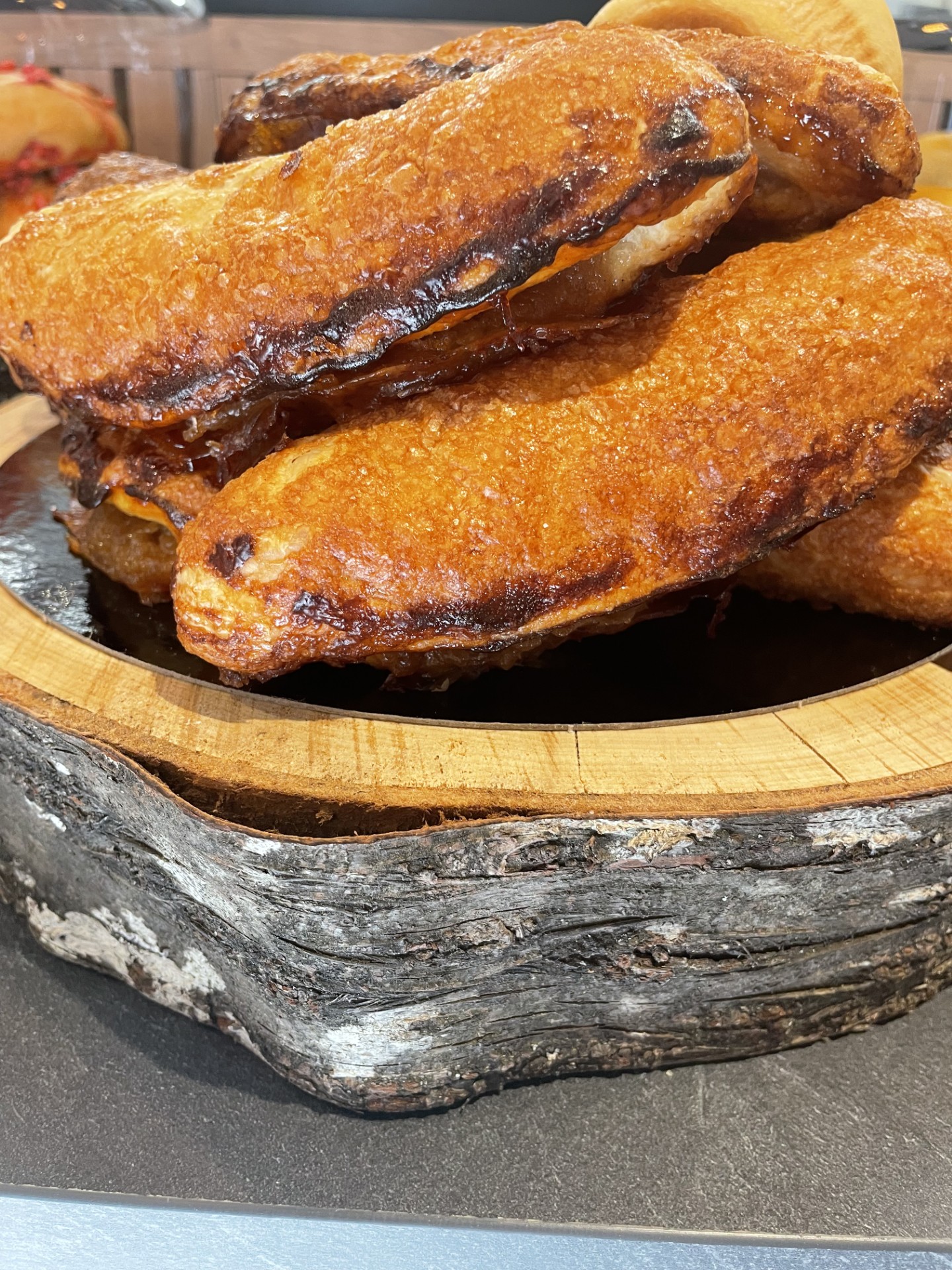 Pâte feuilletée caramélisée, compotée de pommes au beurre, cassonade et vanille.