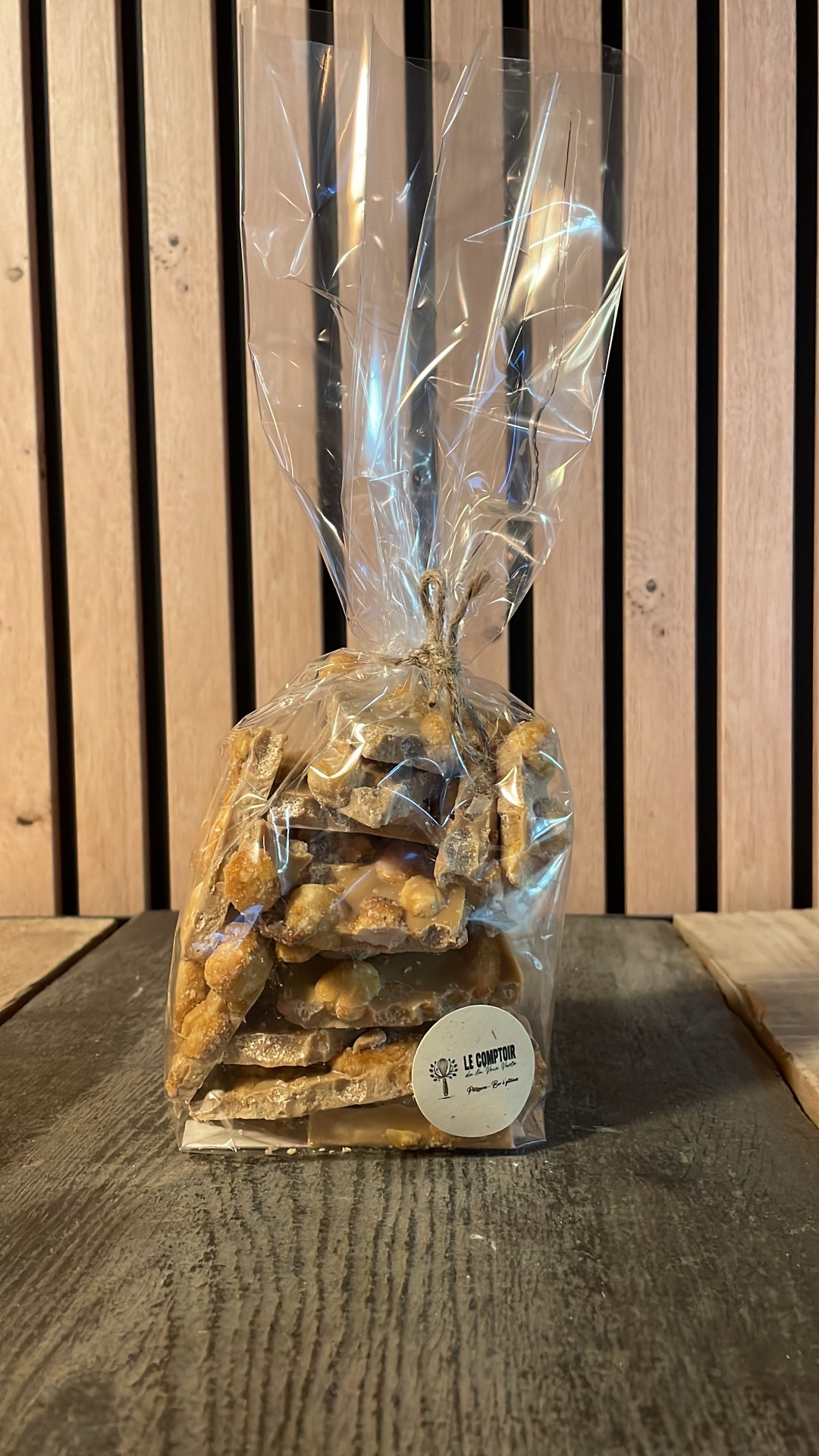 Chocolat blond 36% aux notes biscuitées et fleur de sel, noisettes et amandes caramélisées.