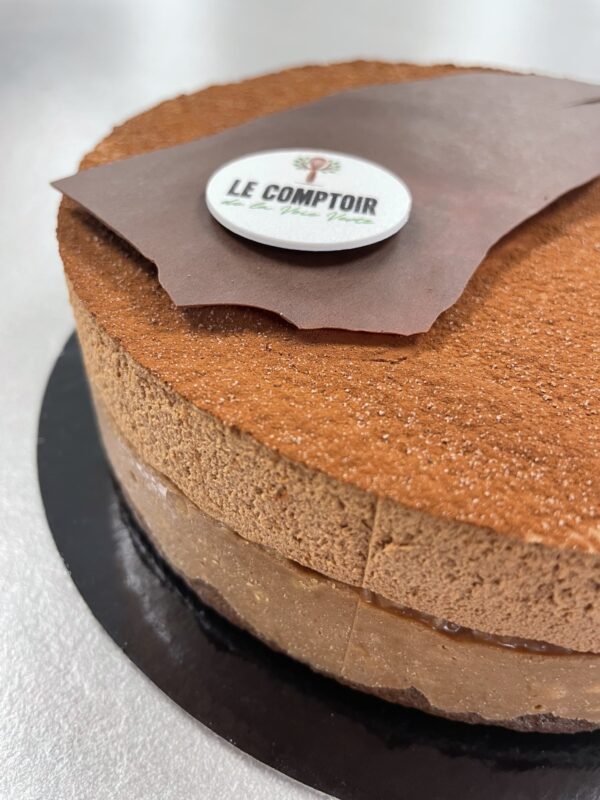 Dacquoise amande cacao, croustillant praliné feuilleté amandes noisettes, mousse chocolat noir 64%